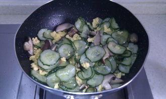 将新鲜的香菇和黄瓜洗净切片,热锅凉油,先将香菇下锅翻炒至变色,再加入黄瓜一起翻炒。加入适量的盐、生抽和鸡精调味即可。这道菜色泽诱人,口感清爽,香菇的鲜美与黄瓜的清爽完美结合,让人回味无穷。